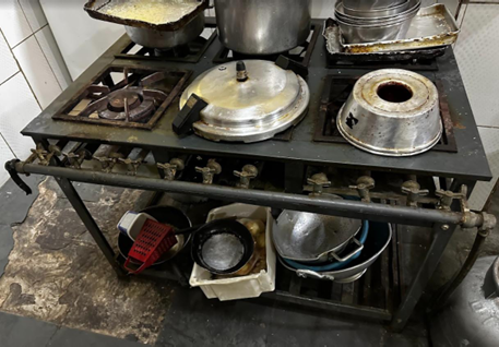 vii) 01 fogão industrial 6 bocas, a gás, mau estado. Avaliação: R$ 500,00