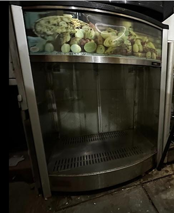 viii) 01 ralador de queijo Gpaniz, bivolt, s/nº 130820000393, bom estado. Avaliação: R$ 1.500,00;ix) 01 balcão expositor refrigerado, vidro frontal, 127V, 1,5m x 1,5m, sem etiqueta, funcionando, estado regular. Avaliação: R$ 1.500,00