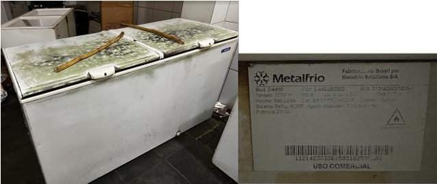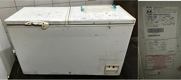 iii) 01 freezer horizontal Fricon, 503L, 220V, em funcionamento, mau estado. Avaliação: R$ 800,00