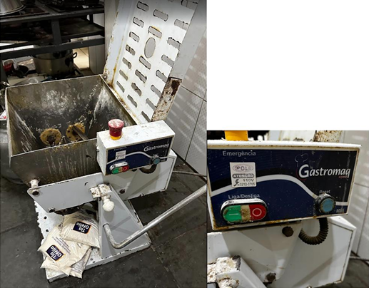 vi) 01 amassadeira basculante Gastromaq, 127V, funcionando, estado regular. Avaliação: R$ 2.000,00