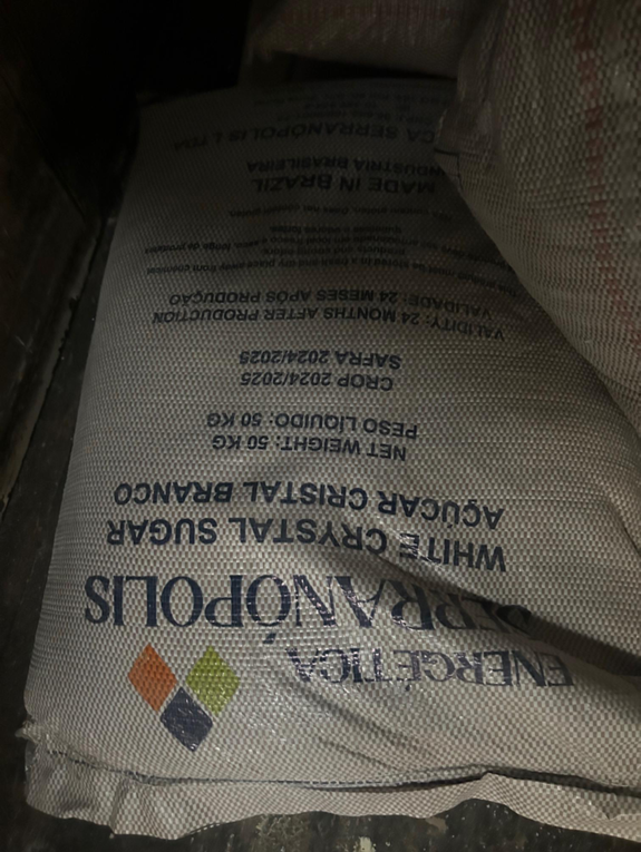 LOTE 2- 140 sacos de açúcar, matéria prima, safra de julho de 2025, com validade de 24 meses, conforme declaração, avaliado o quilo em R$ 5,00 (cinco reais), cada saco contendo 50 kg, totalizando o valor de R$ 35.000,00 (trinta e cinco mil reais).
